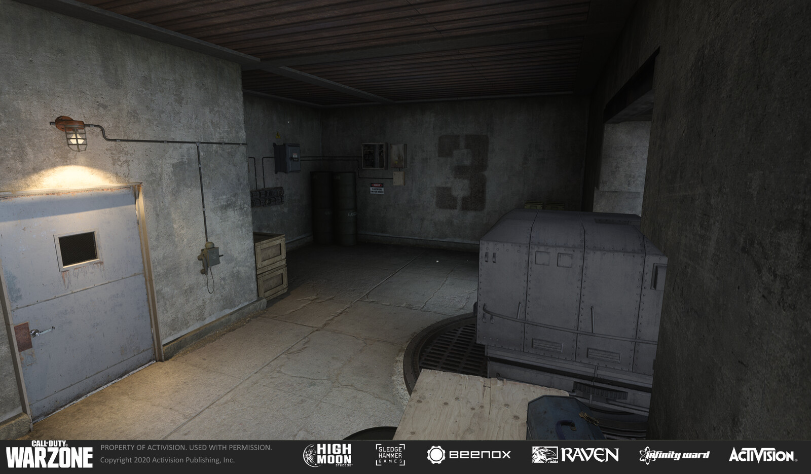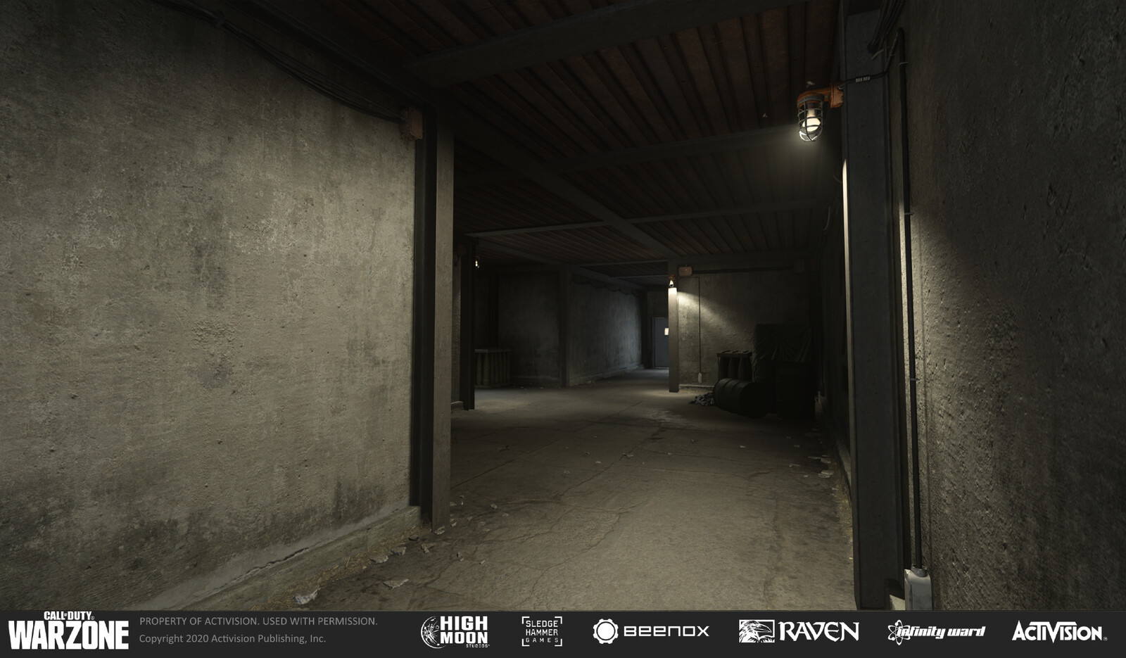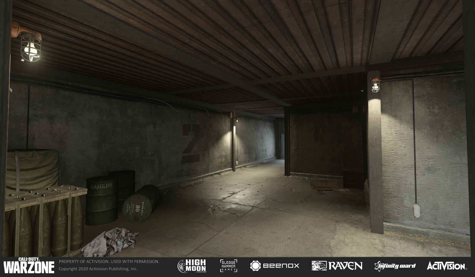 The bunker in Warzone's Caldera map. The bunkers are in different areas of the village & ruins area. The gun rooms were primarily lit by sunlight, but the hallways leading to/from the gun rooms were kept darker and creepier in tone.
