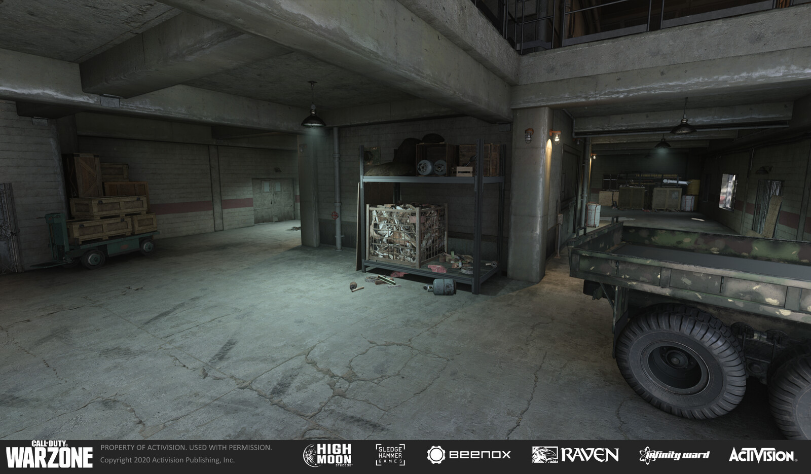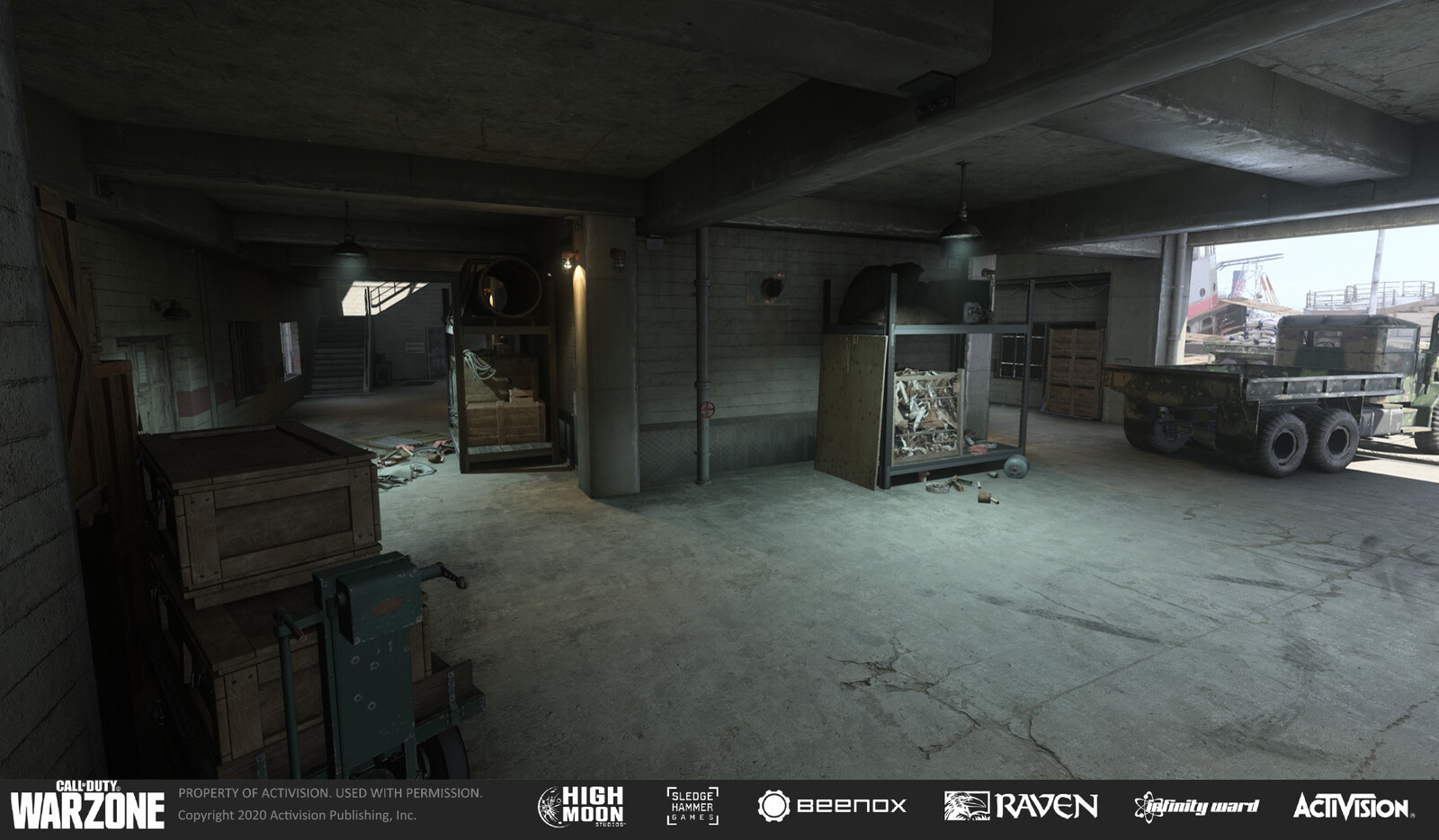 I was responsible for lighting, reflection probe setup, tuning atmospheric and exposure settings, and conveying the mood/story of the level. Due to the nature of Warzone's competitive multiplayer mode, visibility for the player was also of paramount importance. I communicated with concept, design, and environment teams to ensure the gameplay and narrative were being supported by lighting. I coordinated with the FX team to make sure exposure settings and atmospherics were supporting effects, and worked with tech art to help optimize the level while still reaching our visual target.