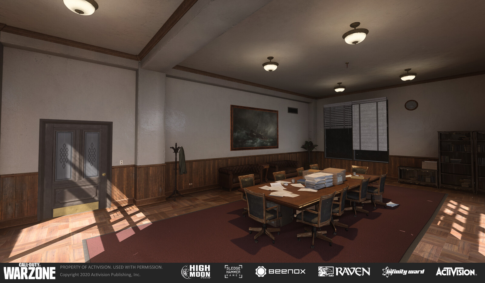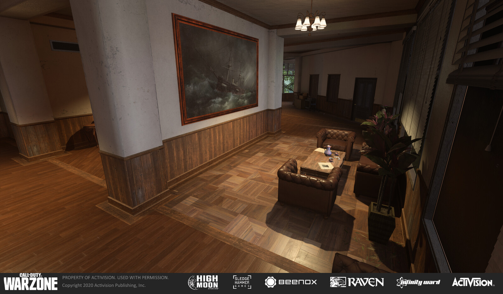 I was responsible for lighting, reflection probe setup, tuning atmospheric and exposure settings, and conveying the mood/story of the level. Due to the nature of Warzone's competitive multiplayer mode, visibility for the player was also of paramount importance. I communicated with concept, design, and environment teams to ensure the gameplay and narrative were being supported by lighting. I coordinated with the FX team to make sure exposure settings and atmospherics were supporting effects, and worked with tech art to help optimize the level while still reaching our visual target.