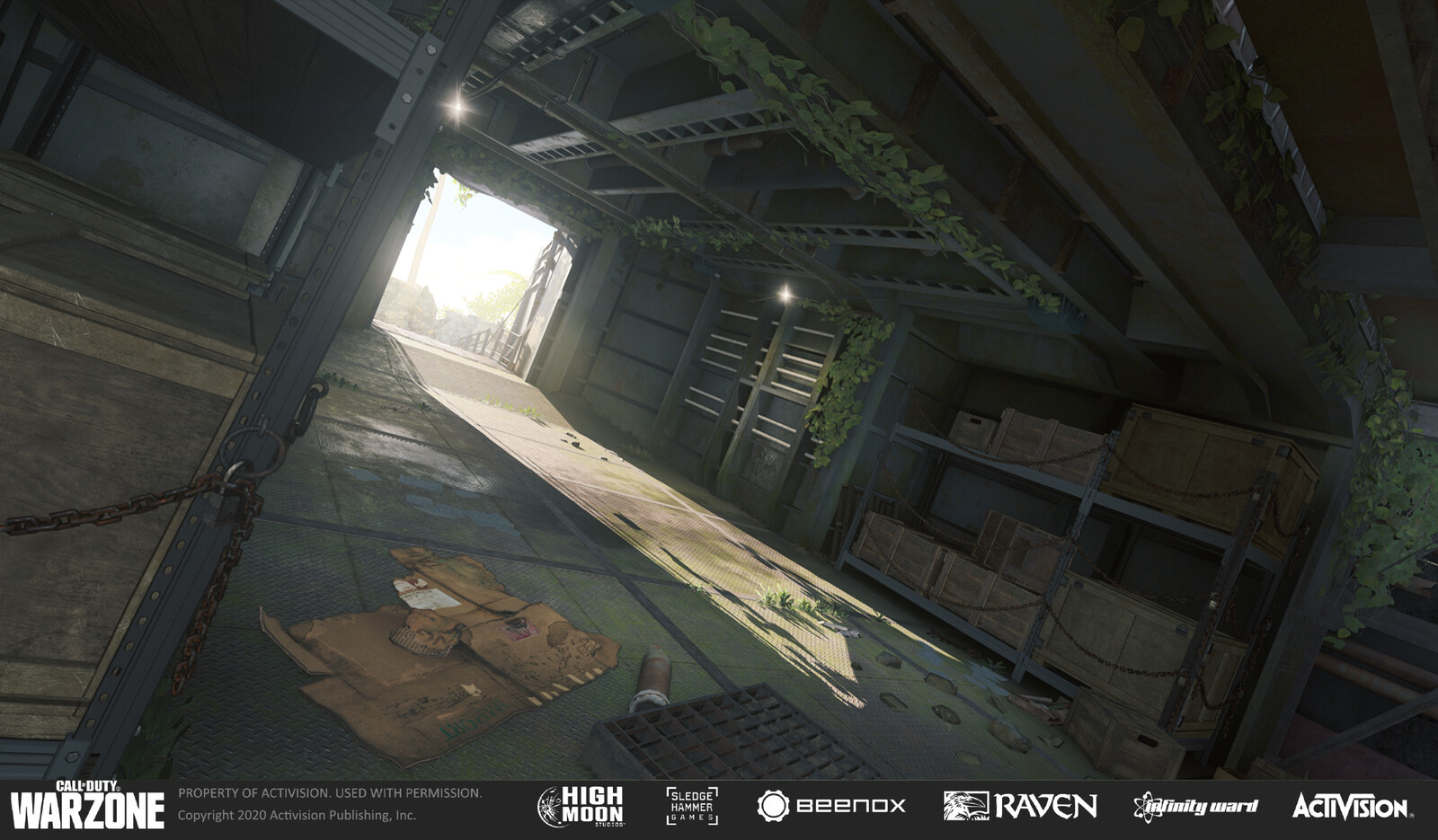 I was responsible for lighting, reflection probe setup, tuning atmospheric and exposure settings, and conveying the mood/story of the level. Due to the nature of Warzone's competitive multiplayer mode, visibility for the player was also of paramount importance. I communicated with concept, design, and environment teams to ensure the gameplay and narrative were being supported by lighting. I coordinated with the FX team to make sure exposure settings and atmospherics were supporting effects, and worked with tech art to help optimize the level while still reaching our visual target.