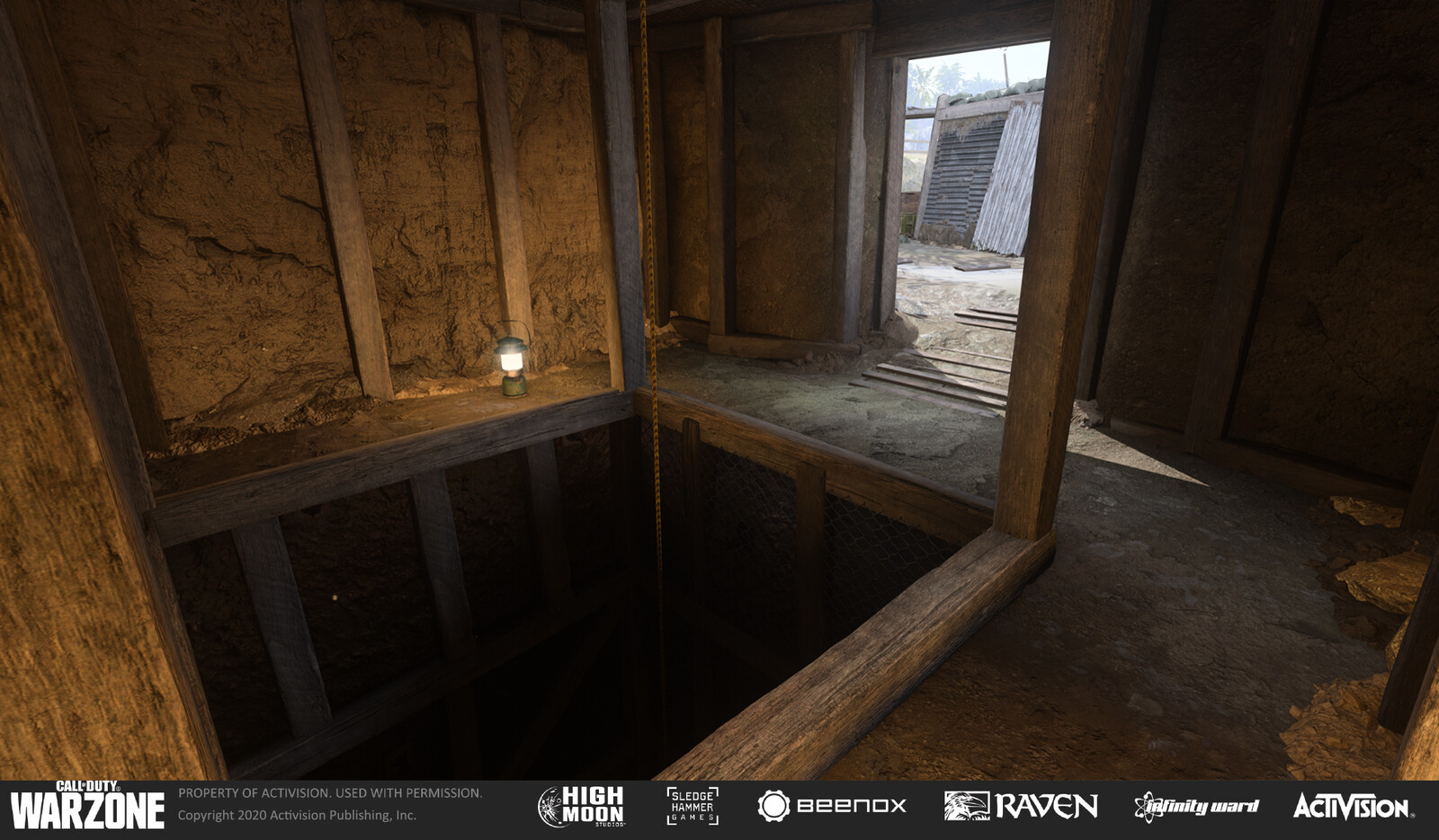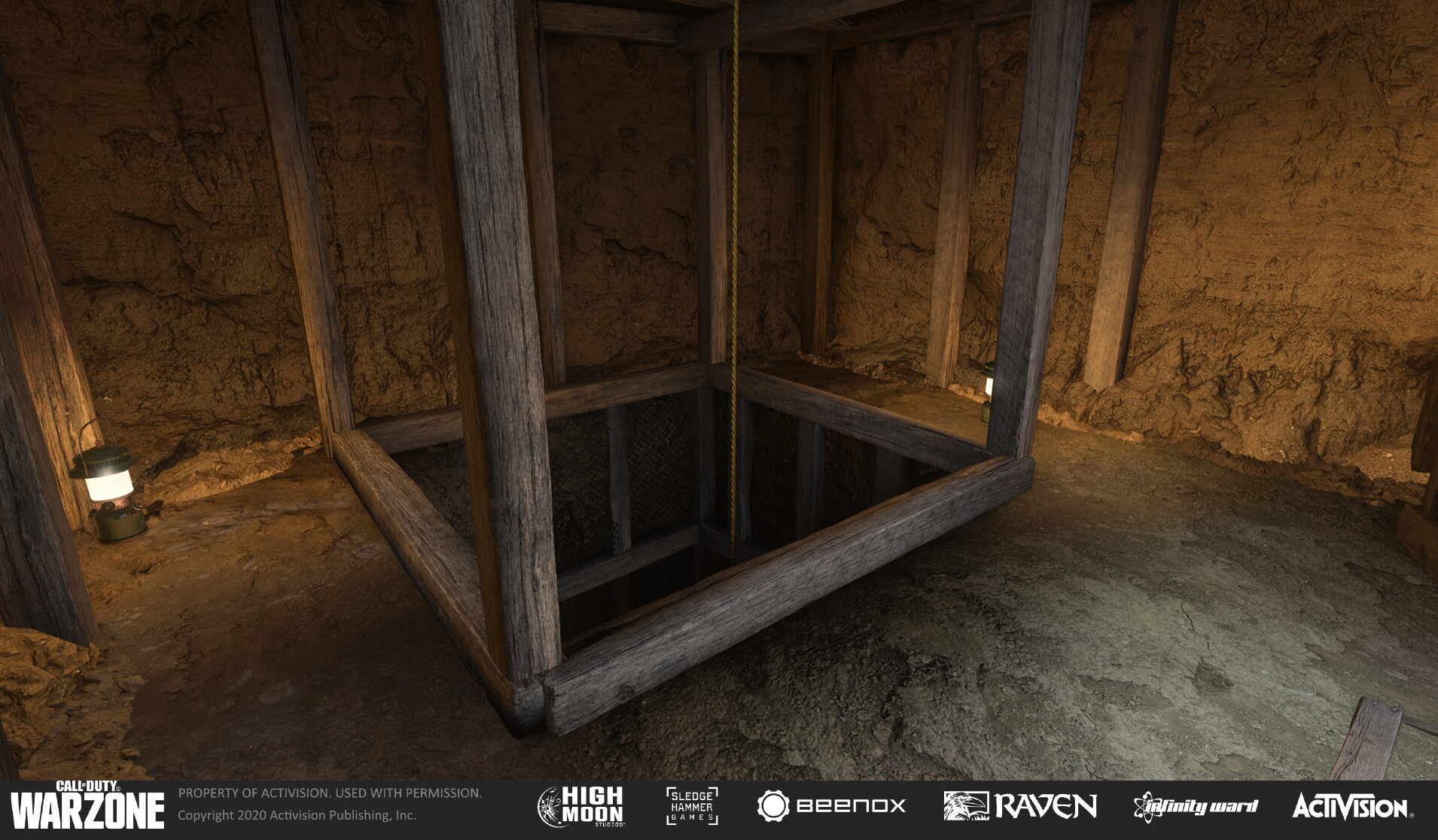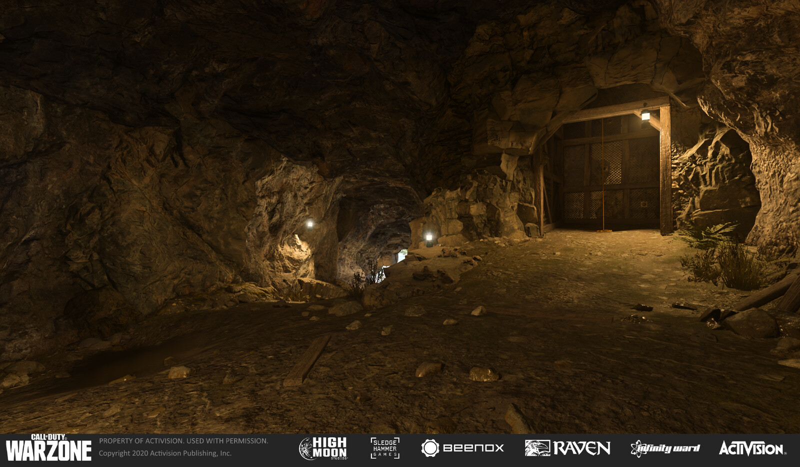 The caves in Warzone's Caldera map. These caves are spread throughout the village & ruins area of the map. I kept the warm lighting tone consistent throughout all the caves, to contrast with the more neutral sunlight outside.